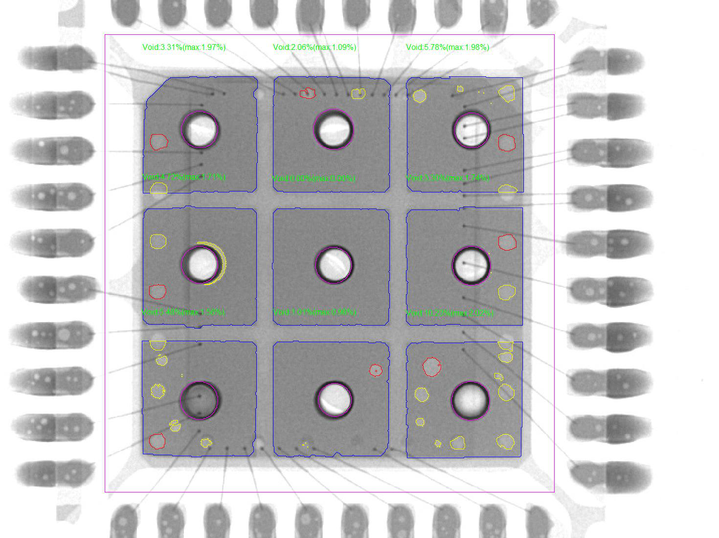 - Ferramentas de análise: medição (círculo, retângulo, linha, polígono, triângulo, curvatura), BGA, voids, LED, IC, alinhamento e mapeamento CNC.
