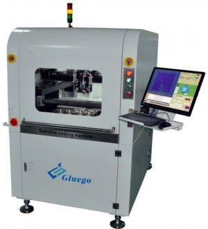 Máquinas com excelente precisão e funcionalidade, com 3 tipos de nozzles simultâneos, vários movimentos de eixos, garantem uma camada contante com precisão em microns e custo-benefício excelente. Elas tornam possível utilizar esta excelente tecnologia de proteção às placas e componentes.
