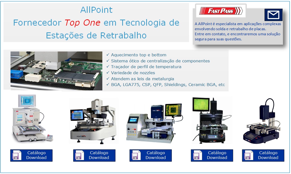 Estações de Retrabalho BGA - Rework Station BGA - de todos os tipos disponíveis na AllPoint. Contate-nos. Linha extensa de equipamentos de reparo de placas BGA.